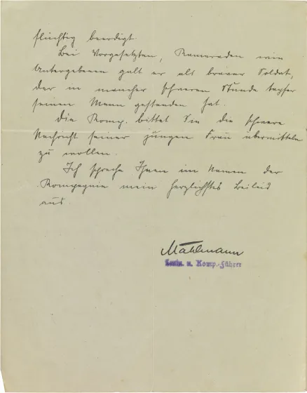 Mitteilung des Kompanieführers mit der Nachricht von Arthur Polacks Tod