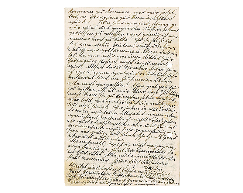 Schreibt uns doch recht bald & ausführlich. Herzl[iche] Gratulation & Grüße auch den Kindern. Von Meinhardt möchte ich gern die Adresse haben. Meinh[ardt] schrieb mir zwar vor einiger Zeit, ich finde aber seinen Brief nicht.