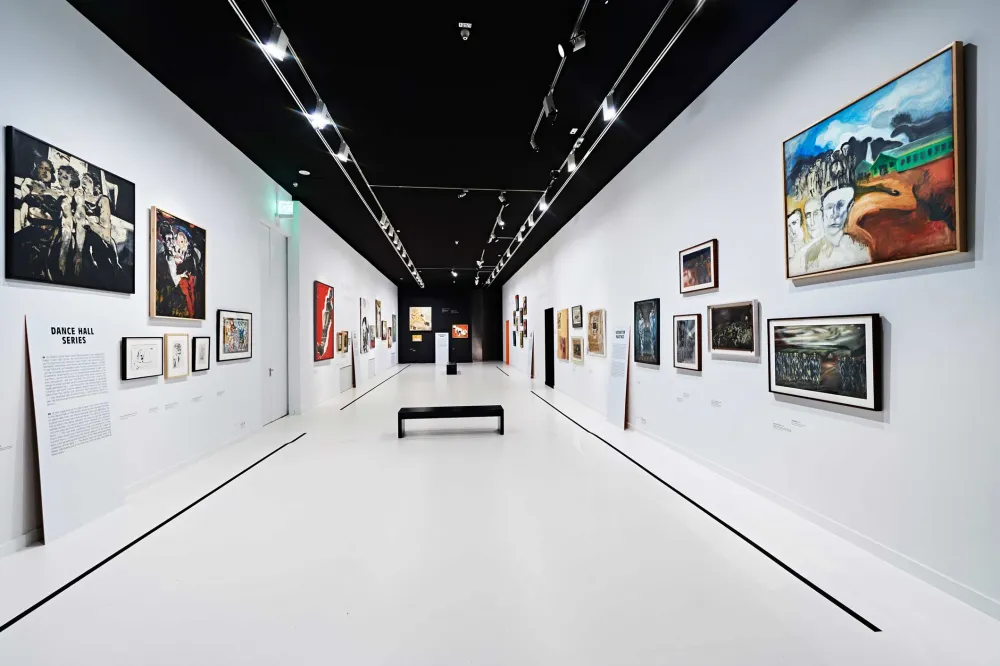 The following picture gallery provides an overview of the various groups of Boris Lurie's works that were shown in our retrospective: